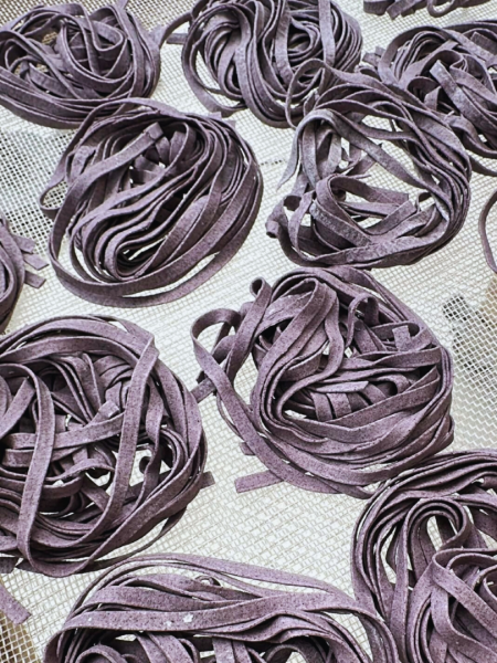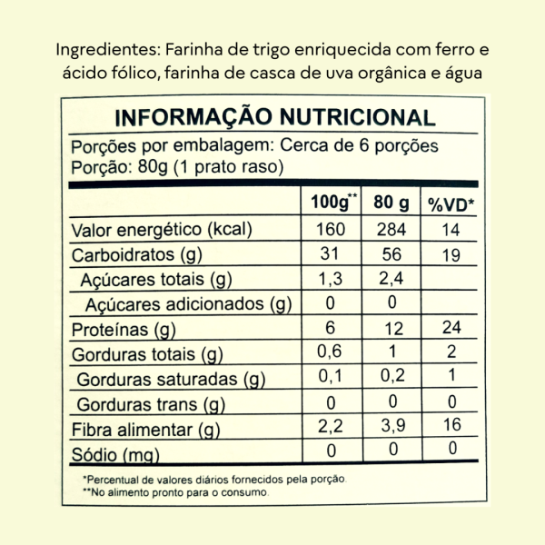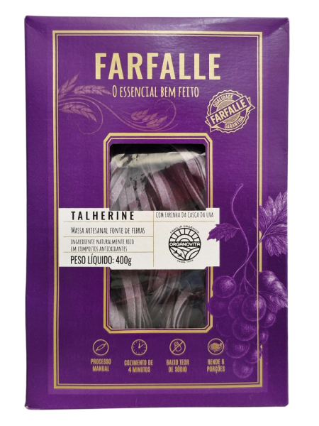 Uma massa especial que une tradição, inovação e propósito. Elaborada de forma artesanal, esta massa leva farinha de casca de uva, ingrediente naturalmente rico em fibras e antioxidantes, que agrega valor nutricional e sabor ao prato.