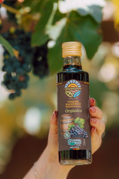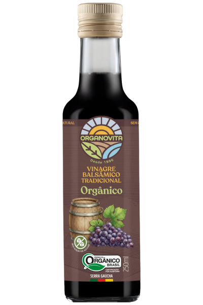 O Vinagre Balsâmico Orgânico sem açúcar da Organovita é produzido com uvas da Serra Gaúcha ressaltando o terroir da região, sua fermentação é lenta e natural do suco de uva e sua maturação é feita em barris de madeira. Ele possuiu apenas 2 ingredientes. Um vinagre para quem busca sabor, sustentabilidade e saúde para o seu dia.